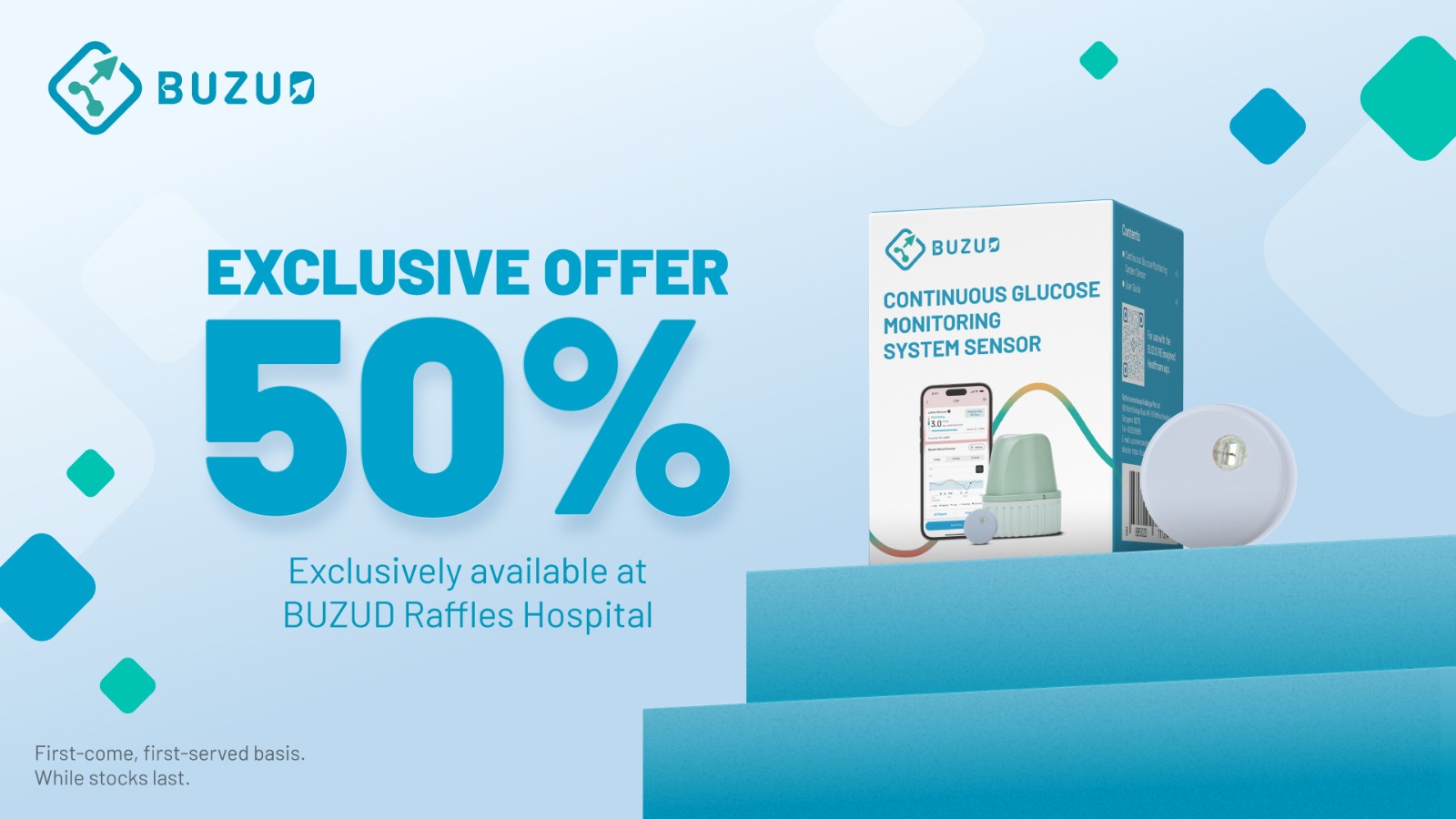 Exclusive Offer at BUZUD Raffles Hospital BUZUD is pleased to present a special release of CGM devices with nearer-dated validity at an exceptional 50% privilege. Available on a first-come, first-served basis. Nearer-dated Validity date of CGM devices: 9 to 12 April 2026 Exclusively available at our flagship store: 585 North Bridge Road, #01-02, Raffles Hospital, Singapore 188770 Working Hours Mon – Fri: 9am to 8pm Sat – Sun: 10am to 7pm While stocks last....
