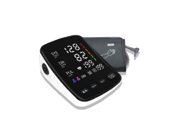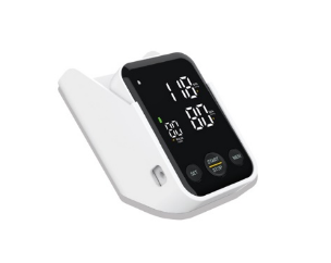 Blood pressure result indicator. Irregular heartbeat detection and indication. Digital error messages and low power detection. Large LCD display, unique curved screen design. Saves up to 199 readings each for 2 users.