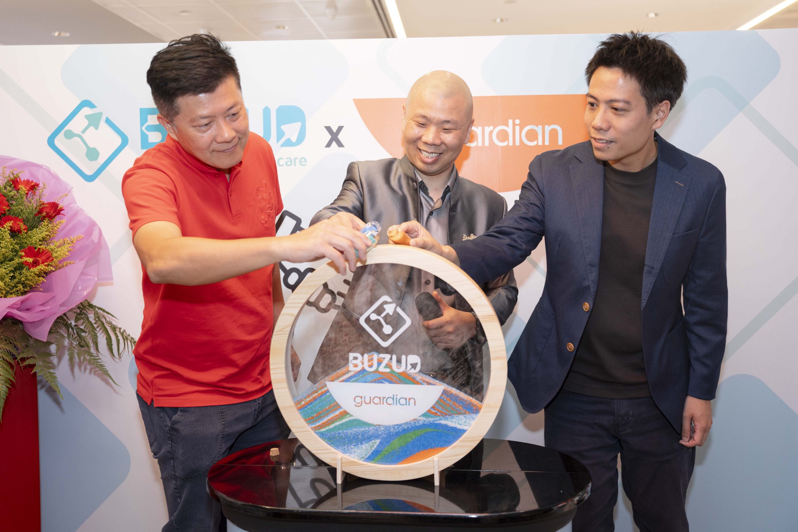 (From left to right: Dr Ng Chin Siau, Q&M DENTAL GROUP founder and CEO; Frankie Fan, BUZUD founder and CEO; Conrad Lai, Guardian Singapore Commercial Director)